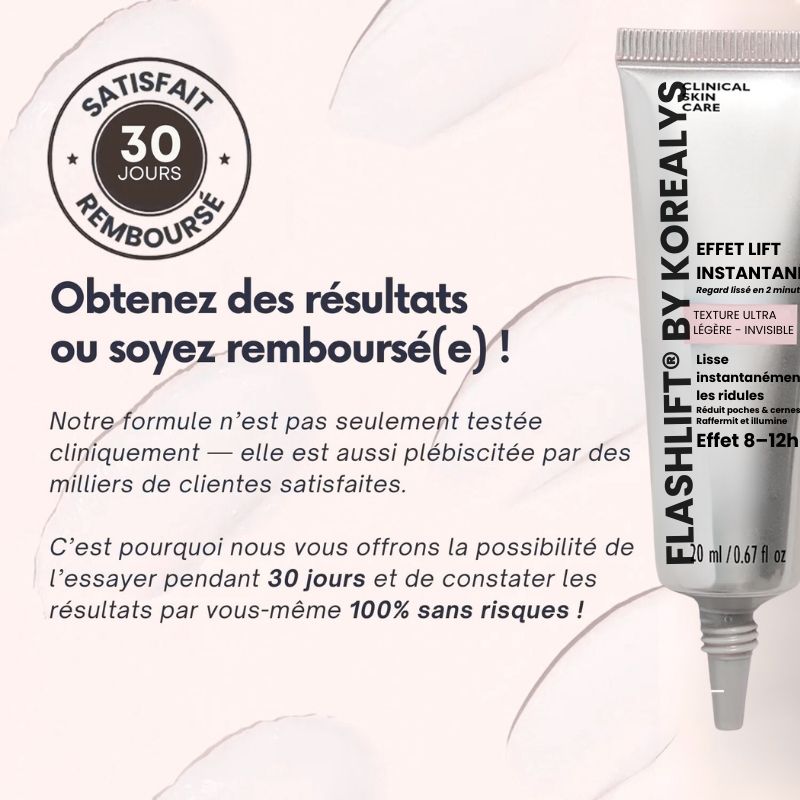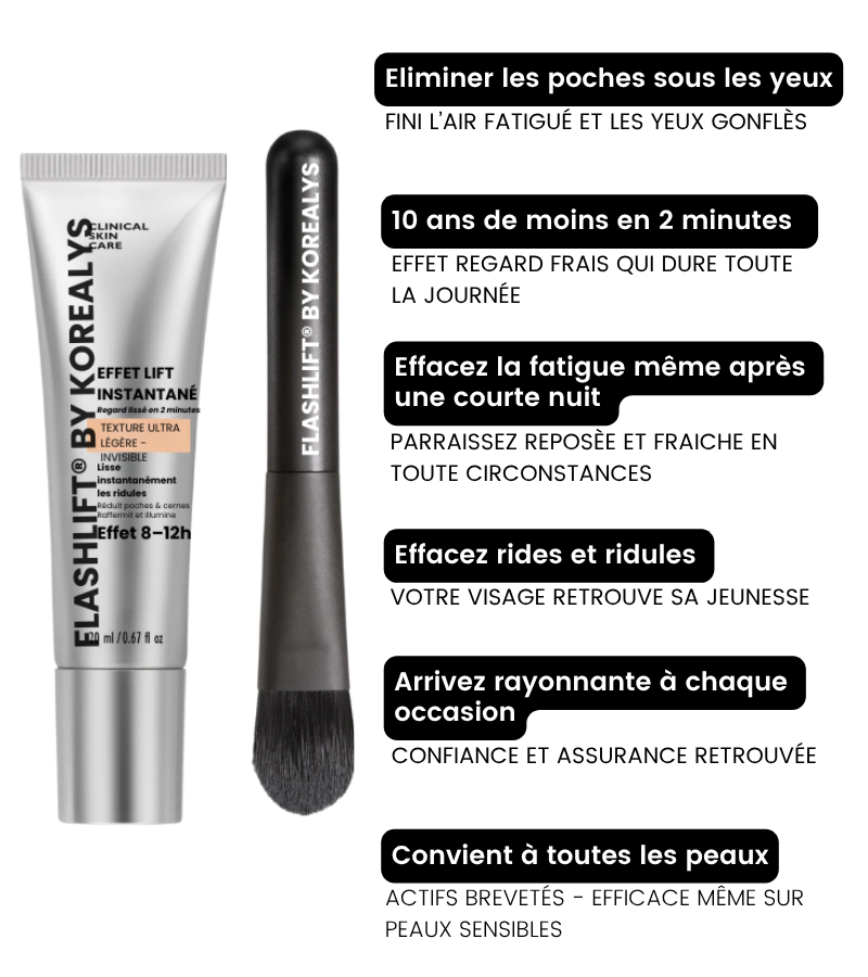 Effet lift instantané  retend visiblement le contour des yeux